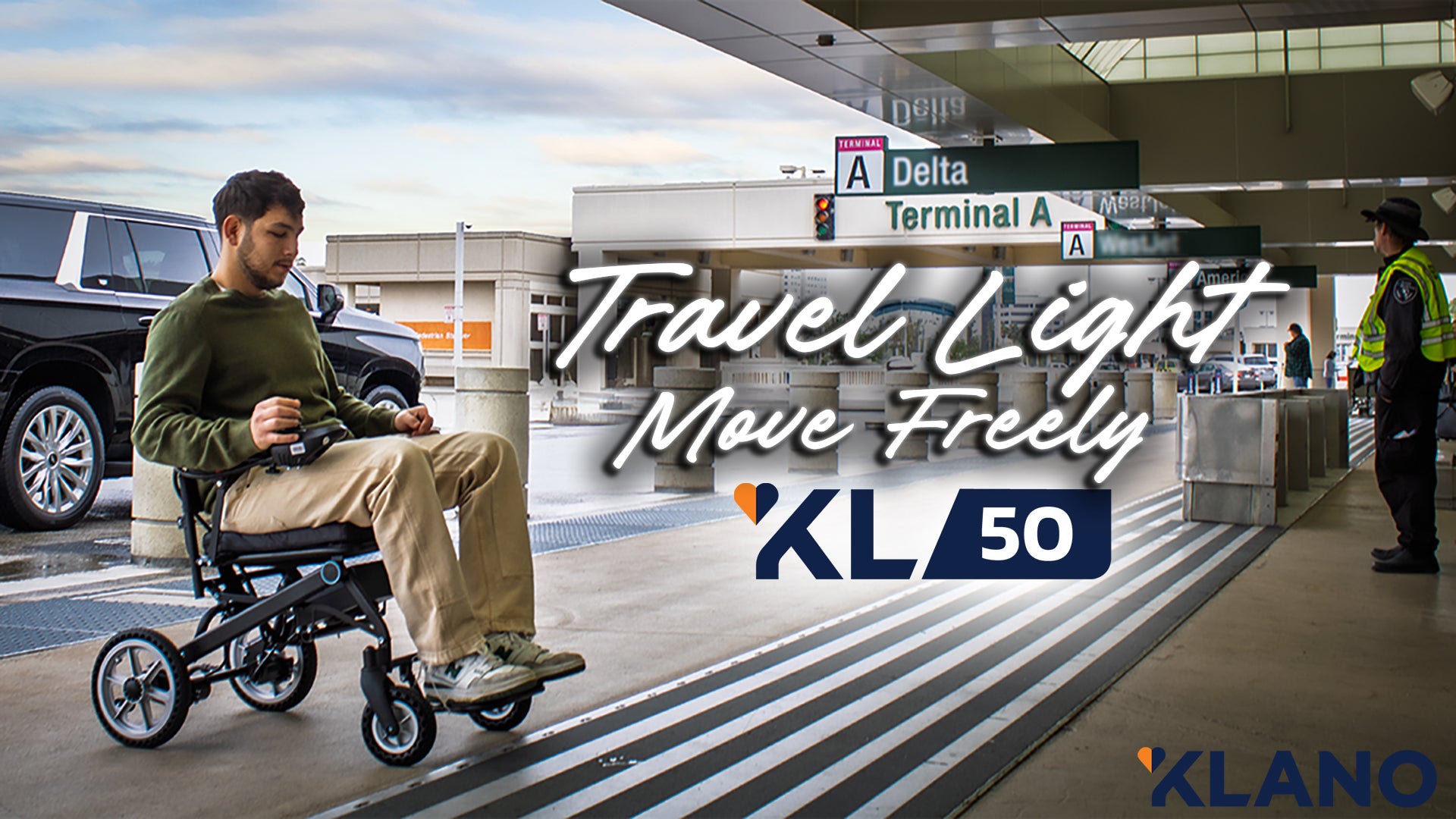 The Klano KL50 Electric Wheelchair weighs only 25 pounds, making it one of the world's lightest foldable power wheelchairs.